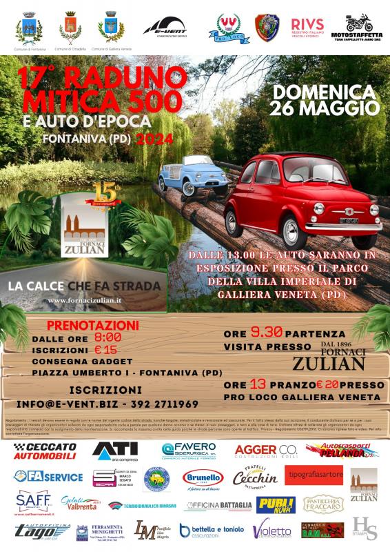 1Raduno Fiat 500 e Auto d'Epoca Domenica 25 Maggio 2025 – Fontaniva (PD)