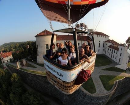 Il Castello festeggia la riapertura di Primavera colorando il cielo di mongolfiere e aquiloni e a fare da scenografia naturale l'Anfiteatro Morenico di Ivrea e le Alpi dalle sue terrazze.