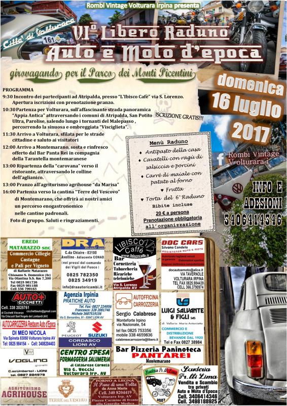 Ecco a voi il programma del 6 raduno di auto e moto d'epoca Rombi Vintage Volturara Irpina