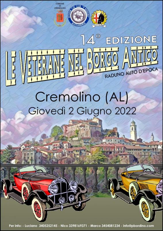 A Cremolino in provincia di Alessandria si svolge nella giornata di Giovedì 02 Giugno 2022 la 14a edizione del raduno Auto d'Epoca "Le Veterane nel Borgo Antico".