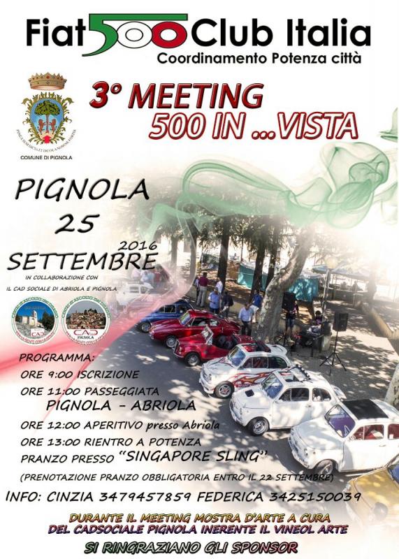 Domenica 25 Settembre a Pignola il III Meeting 500 In…Vista organizzato da FIAT 500 Club Italia Coordinamento di Potenza Città