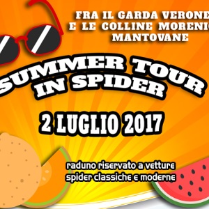 Estate: stagione ideale per viaggiare con le nostre vetture spider “top down” cullati dal mite clima del Garda Veronese e delle Colline Mantovane. Ritrovo a Desenzano per il nuovo tour tra le province di Brescia, Verona e Mantova, ideato dall'Associazione 'Viaggio in Spider', abbinando l'eleganza di queste auto alla conoscenza del territorio e della sua enogastronomia. Un'occasione per divertirci e rilassarci, concludendo il nostro raduno alle prime luci della sera con un buffet estivo a sorpresa immersi fra viti e ulivi.