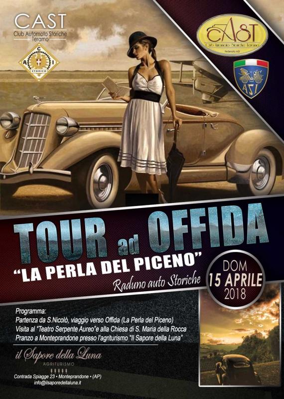 Si apre domenica 15 aprile, con il Tour ad Offida "La perla del Piceno", la nuova serie di attività organizzate per il 2018 dal Cast - Club Automoto Storiche Teramo. L'evento, che ha il patrocinio di Asl e Aci storico, prevede la partenza alle ore 8 da San Nicolò a Tordino (TE) e il viaggio alla volta di Offida (AP), borgo antico ritenuto tra i più belli d'Italia.