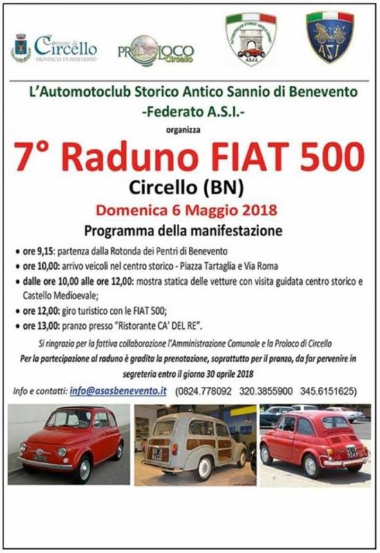 Organizzato dall'ASAS di Benevento, in collaborazione con Comune e Pro Loco di Circello, l'evento prevede la partenza alle ore 9.15 dalla Rotonda dei Pentri di Benevento con arrivo alle 10.00 a Circello, dove ci sarà la mostra statica delle vetture, la visita guidata del centro storico e del Castello.