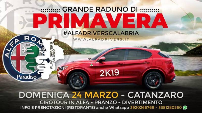 Ed eccoci qua cari amici alfa drivers ed alfisti, siamo giunti a cavallo della primavera e per questo 2019 iniziamo con questo primo grande raduno, stavolta un po diverso, stavolta saremo tutti protagonisti con un bellissimo Girotour alla scoperta dei paesi di Catanzaro.