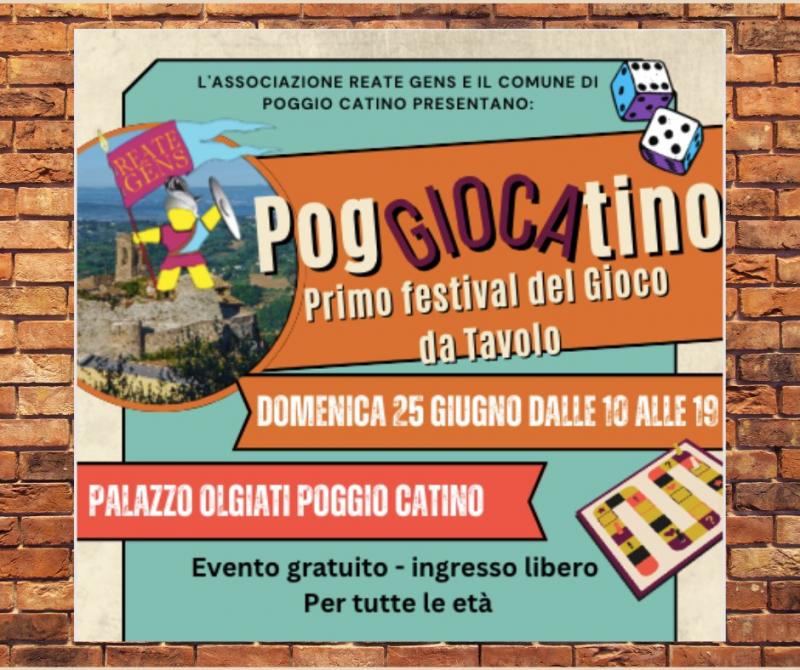 L'associazione Reate Gens - Ludens in Tabula con la collaborazione del Comune di Poggio Catino, della Pro Loco e con la partecipazione di GDT- Roma Players sono lieti di invitarvi alla prima edizione del Festival del Gioco da Tavolo in Sabina!