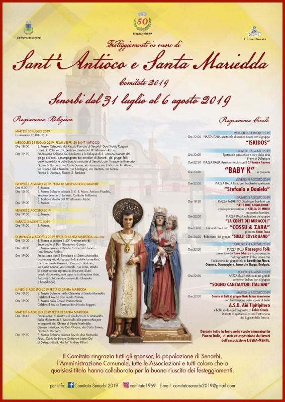 A Senorbì in provincia di Cagliari si svolge nei giorni dal 31 Luglio al 06 Agosto 2019 la Festa di Santa Mariedda e Sant'Antioco.