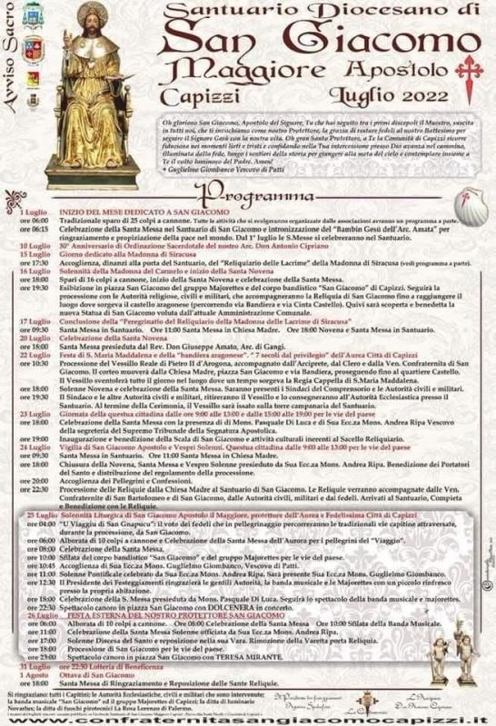 Dall'1 al 31 luglio 2022 a Capizzi (ME) si svolgono gli eventi della Festa Di San Giacomo Apostolo Maggiore.