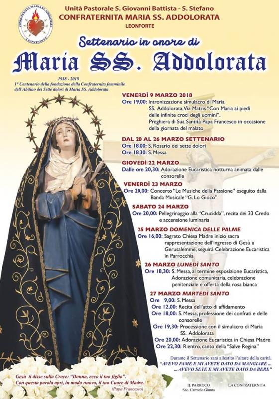 Dal 9 al 27 marzo 2018 a Leonforte (EN) si svolgono le celebrazioni della Festa in onore di Maria SS. Addolorata.