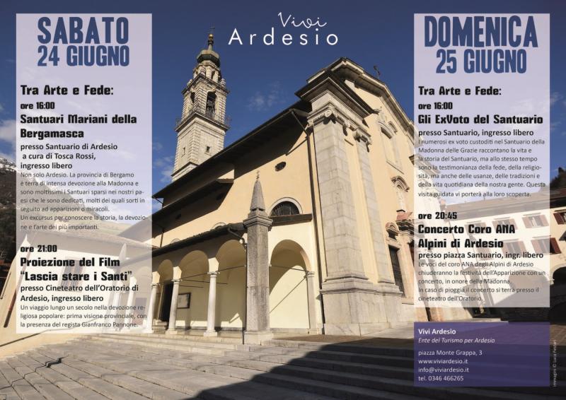 Il 23 giugno 2017 ricorre il 410^ Anniversario dell’Apparizione della Madonna delle Grazie ad Ardesio. Luogo di fede ed esempio di arte barocca il Santuario della Madonna delle Grazie accoglie ogni anno migliaia di pellegrini provenienti da tutto il Nord Italia.
