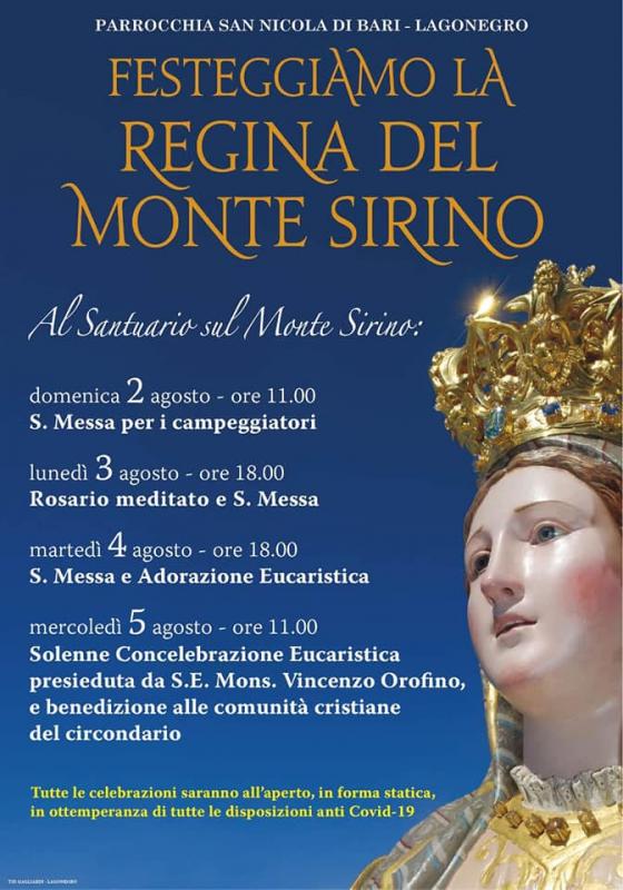 A Lagonegro in provincia di Potenza si svolgono nei mesi di Giugno, Agosto e Settembre i Solenni festeggiamenti in onore della Madonna del Sirino.