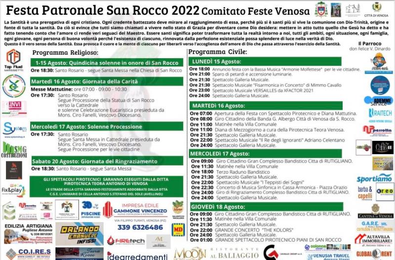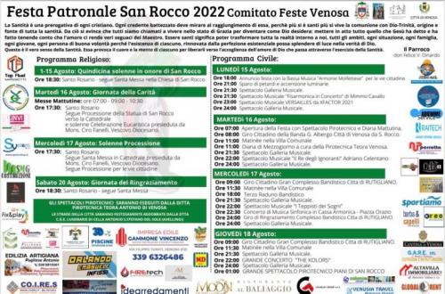 A Venosa in provincia di Potenza si svolge nei giorni dal 15 al 18 Agosto 2022 la Festa di San Rocco.