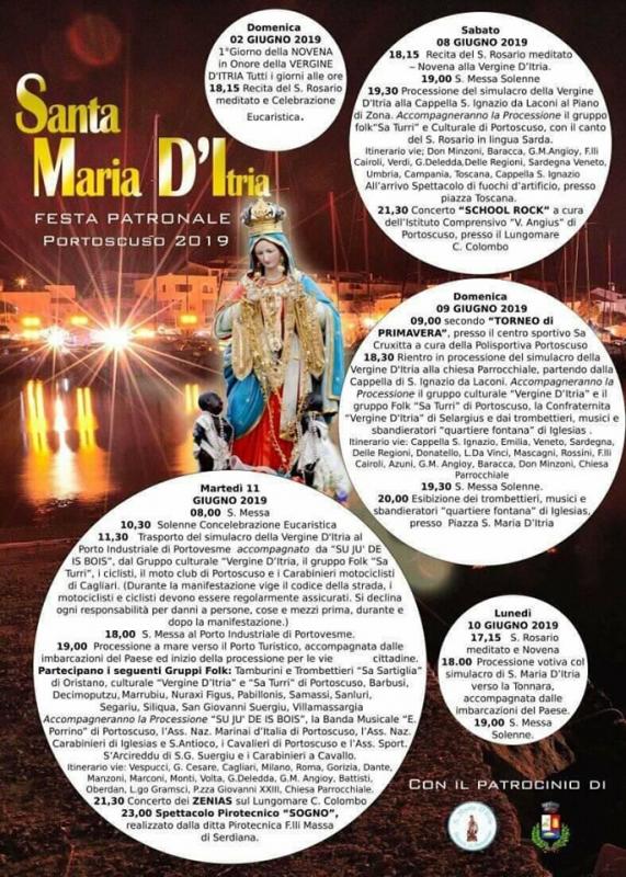 A Portoscuso in provincia di Carbonia-Iglesias si svolge nei giorni dal 02 al 11 Giugno 2019 la Festa di Santa Maria d'Itria.