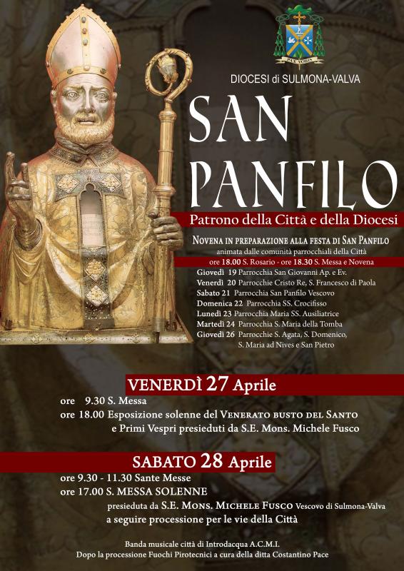 La festa di S. Panfilo si celebra da epoche remotissime. La conferma viene data da un'iscrizione che compare nel calendario liturgico affrescato nel santuario di Bominaco situato lungo gli antichi sentieri della transumanza, in direzione di L'Aquila. La festività, celebrandosi in primavera, muoveva ed animava tutto il mondo rurale e contadino che affidava al "santo ortolano" tutte le speranze per raccolti cospiqui. Un Santo dal forte impatto carismatico sulle popolazioni locali, ma anche al di fuori del "contado" tanto che l'attuale cattedrale è stata sempre considerata un vero e proprio santuario.
