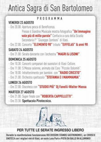 Dal 23 al 27 Agosto 2019 torna l'appuntamento con l'Antica Sagra di San Bartolomeo, Santo Patrono di Illasi.