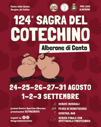 Sagra del Cotechino ad Alberone di Cento (FE) nei giorni 24-25-26-27- 31 Agosto 1-2-3 Settembre 2023 - Festa di Santa Maria Vergine del Salice