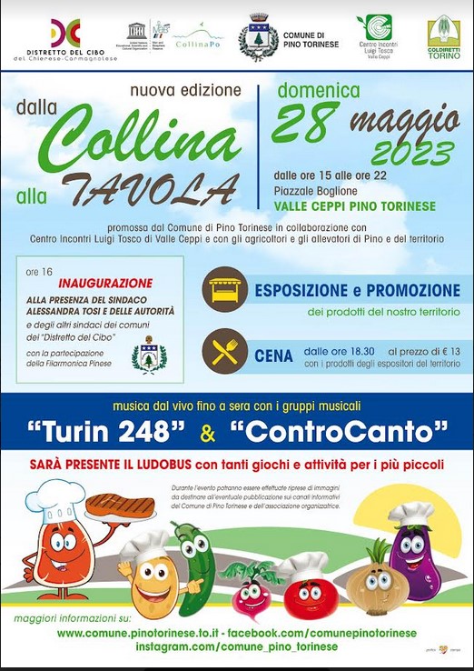 Domenica 28 maggio torna a Pino Torinese “Dalla Collina alla Tavola”: dalle ore 15.00 a Valle Ceppi