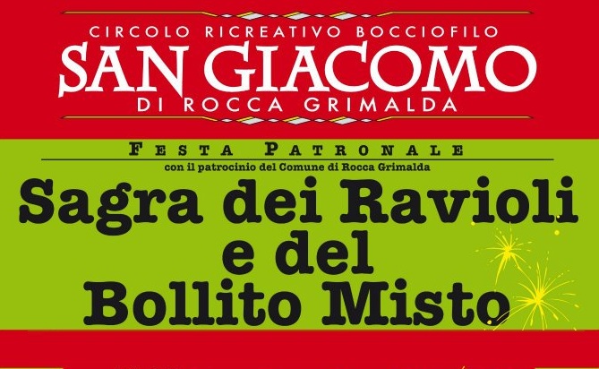 Torna tutti gli anni nel pieno dell'estate, quest'anno dal 2 al 6 agosto 2019 l'appuntamento enogastronomico con la Sagra dei Ravioli e del Bollito Misto a San Giacomo, frazione del Comune di Rocca Grimalda (AL).