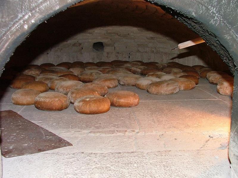 Ore 11.00 lavorazione del pane nero e accensione del forno del villaggio