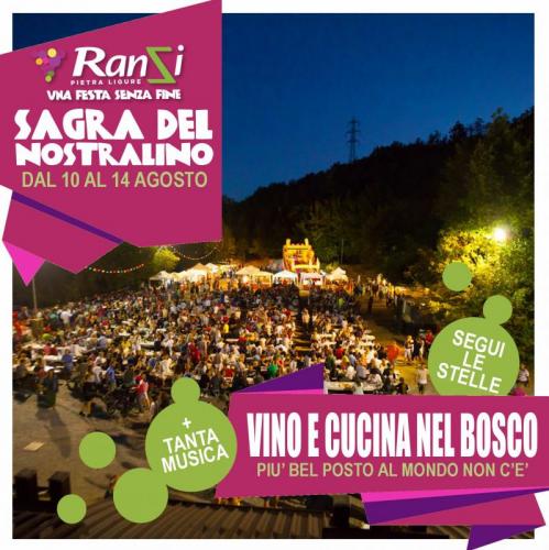 Sagra del Nostralino a Ranzi nei giorni 10, 11, 12, 13, 14 Agosto, sul panoramico Colle della Madonnina, in una conca naturale immersa nel verde e nella quiete della campagna, con ampia disponibilità di parcheggi.