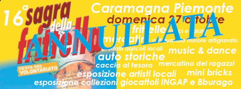 Pertanto, in accordo con l'Amministrazione del Comune di Caramagna, che patrocinava l'evento, abbiamo deciso di annullare la 16^ edizione della Sagra della Frittella e testimoniare così, come comunità di Caramagna, la nostra vicinanza alla famiglia del piccolo Vittorio.