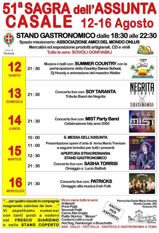 Sagra dell'assunta a Casale , la sagra di Casale 12 -16 agosto 2023 alla Parrocchia Santa Maria Assunta, Strada di Casale 285, 36100 Vicenza