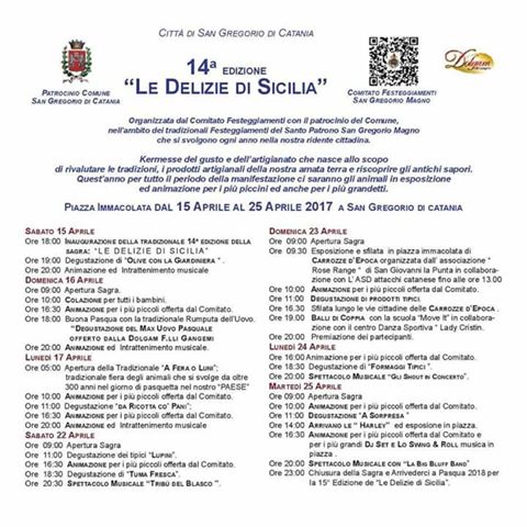 Torna in Piazza della Repubblica a San Gregorio di Catania dal 22 al 25 Aprile 2017 la 14^ Edizione de "Le Delizie di Sicilia"