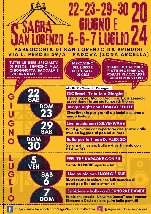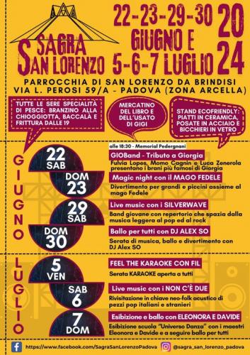 Sagra san lorenzo a Padova in Zona Arcella nei giorni 22, 23 - 29, 30 giugno 5, 6, -7 Luglio 2024