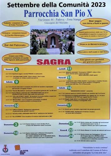 Sagra di san Pio a Padova, 8-9-10-11 - 15, 16-17- 22, 24 settembre 2023 si svolge la festa della comunita di san pio in via Grssi 44 , Zona Stanga a Padova