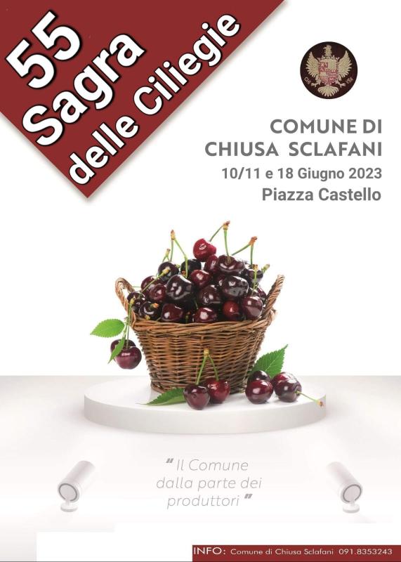 Il 10, 11 e il 18 Giugno 2023 nel comune di Chiusa Sclafani si svolge la 55a Festa delle Ciliegie, una delle più antiche manifestazioni in Sicilia ricca di prodotti tipici locali, degustazioni, musica, animazione, artisti di strada e tanto altro.