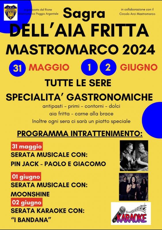Sagra dell'aia Fritta mastromarco di lamporecchio 31 maggio 1 e 2 Giugno 2024