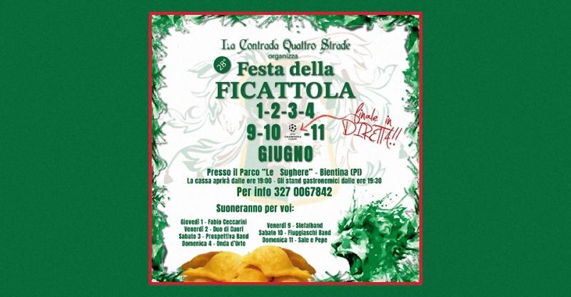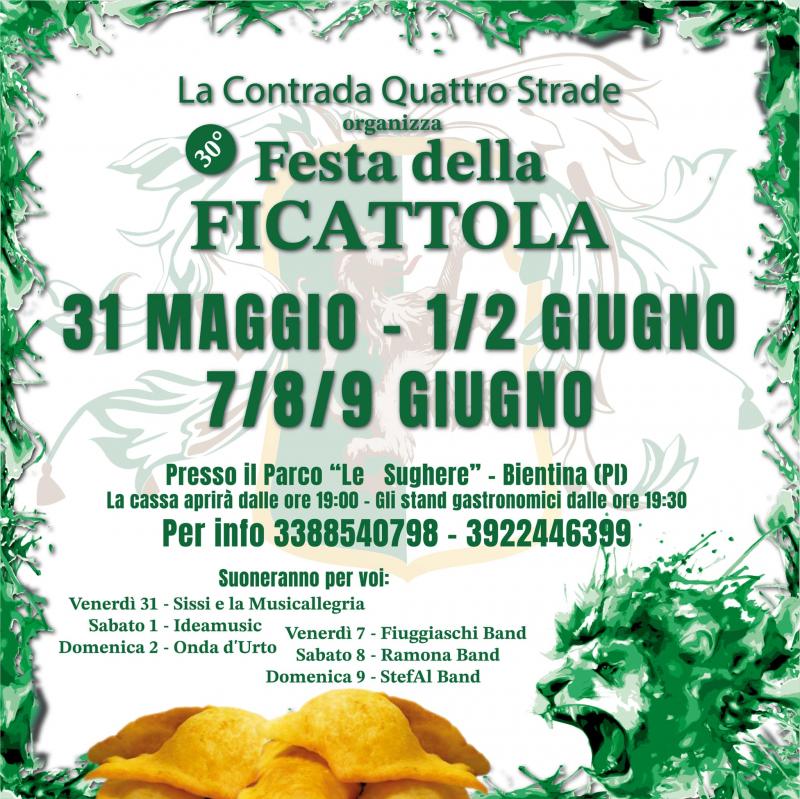 La Sagra della Ficattola in programma presso il Parco "Le Sughere" Località Quattro Strade, Bientina (PI) si svolgerà per 2 fine settimane di seguito: 31 maggio , 1, 2 e 7, 8,9 giugno 2024