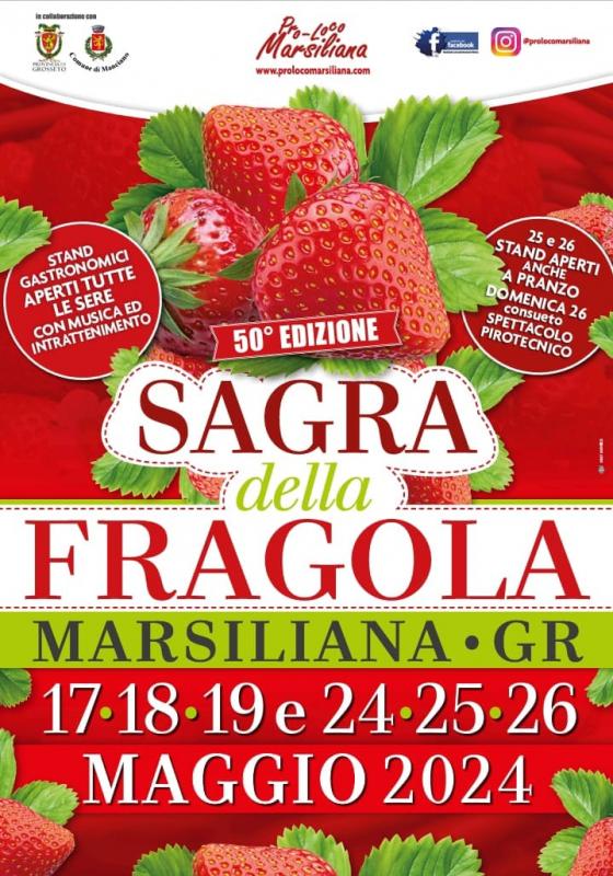 La 49° Sagra della Fragola a Marsiliana di Manciano (Grosseto) si svolgerà dal 19 al 19 e dal 24 al 26 maggio 2024.