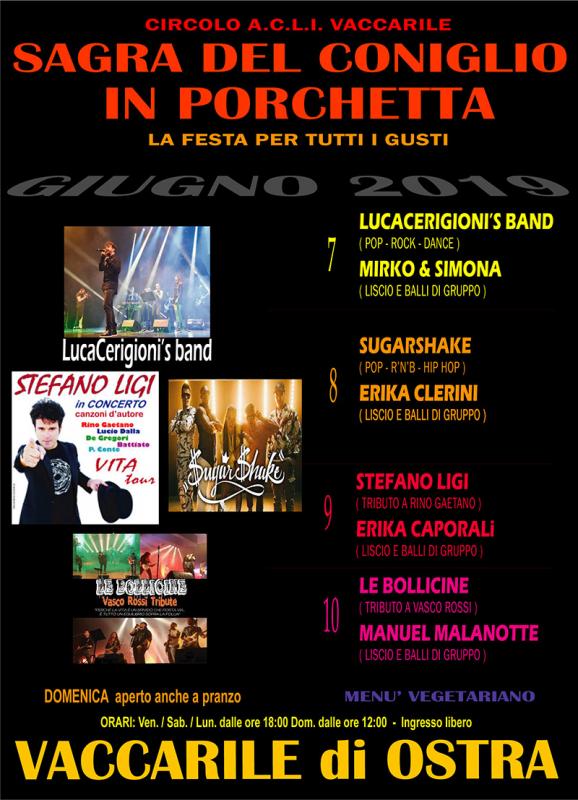 Si rinnova, nei giorni 7, 8, 9 e 10 giugno, il tradizionale appuntamento con la Sagra del Coniglio in Porchetta di Vaccarile, la nota kermesse che nel corso degli anni ha saputo catturare e soddisfare migliaia e migliaia di visitatori. La manifestazione, che giunge con successo alla 19ª edizione, si appresta a conquistare nuovamente il suo numerosissimo pubblico grazie a proposte culinarie eccellenti e ad una miscela esplosiva di buona musica, spettacoli e giochi tradizionali.