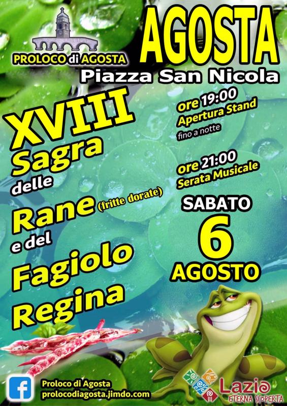 La Sagra della Rana e del Fagiolo Regina si svolgera il 6 Agosto 2022 ad Agosta (RM)