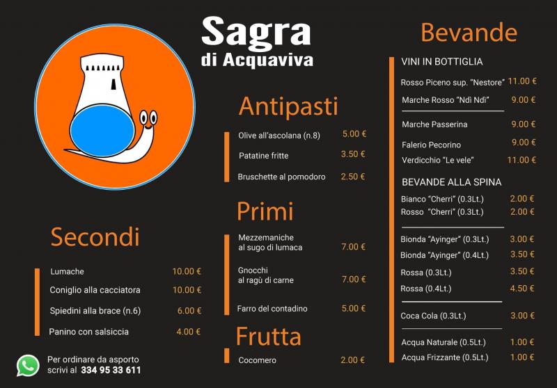 Sagra Lumache ad Acquaviva Picena (AP) dal 10 al 17 agosto 2022.