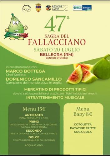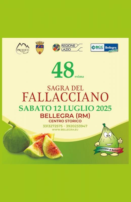 La Pro Loco di Bellegra (RM) organizza a Bellegra, in provincia di Roma, Sabato 12 Luglio 2025 nel Centro Storico del paese la 48a edizione della tradizionale “SAGRA DEL FALLACCIANO” che celebra il fico, prodotto gustoso e tipico del territorio bellegrano.