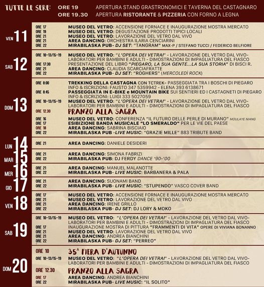 A Piegaro in provincia di Perugia si svolge nei giorni dal 11 al 20 Ottobre 2024 la 36a edizione della Festa della Castagna e dei prodotti tipici.