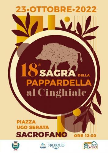 Domenica 23 Ottobre appuntamento annuale con un piatto tipico della cucina sacrofanese alla scoperta dei sapori locali, respirando e vivendo un’esperienza di autentica tradizione attraverso la qualità degli ingredienti, la genuinità della ricetta e la provenienza locale dei prodotti: la pappardella, il cinghiale, l’olio extra vergine di oliva, i vini prodotti nel Parco di Veio.
