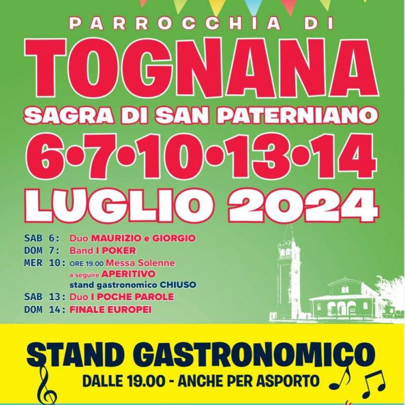 Sagra di San Paterniano A Tognana di Piove di Sacco (PD)si svolge nei giorni 6, 7 , 10, 13, 14 luglio 2023
