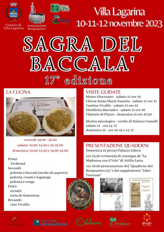 La Sagra del Baccalà si terrà a Villa Lagarina dal 10 al 12 Novembre 2023.