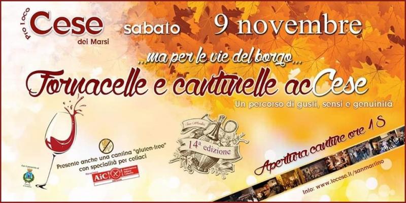 Sabato 09 Novembre 2019 a Cese dei Marsi, nel Comune di Avezzano (AQ), torna l'evento Fornacelle e cantinelle acCese…ma per le vie del borgo.
