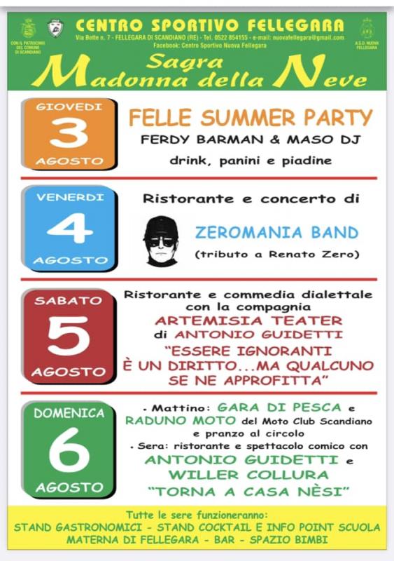 Dal 3 al 6 agosto 2023 si svolge la Sagra della Madonna della Neve a Fellegara di Scandiano (RE).