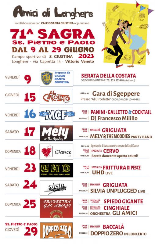 Sagra dei S. Pietro e Paolo a Longhere.di Vittorio Veneto dal 9 al 29 Giugno 2023