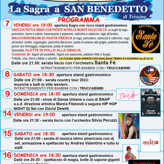Sagra di San Benedetto a Trissino 7-8-9- , 14, 15-16-luglio 2023 Trissino (VI)