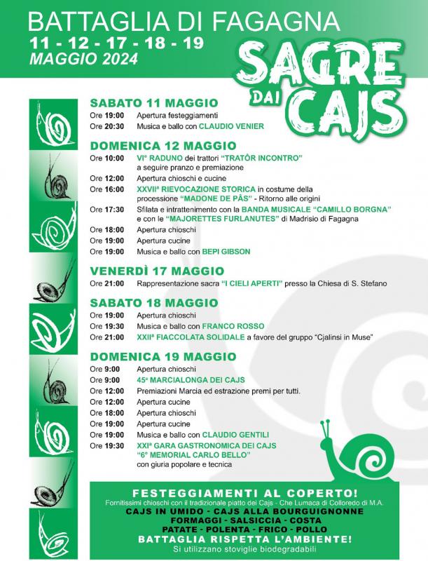 Sagre dai Cais Sagra delle Lumache a Battaglia di Fagagna 11, 12, 17, 18, 19 maggio 2024