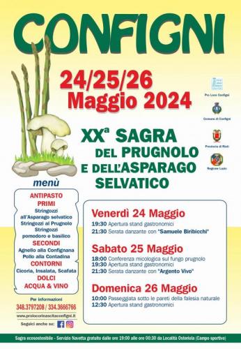 Torna il 24, 25, 26 Maggio 2024 la Sagra del Prugnolo e dell'Asparago Selvatico a Configni (RI): tradizione, natura, sapori e colori.