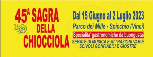 La 45a Sagra della Chiocciola al Parco dei Mille di Spicchio nel comune di Vinci (FI) si svolge dal 15 Giugno al 2 Luglio 2023