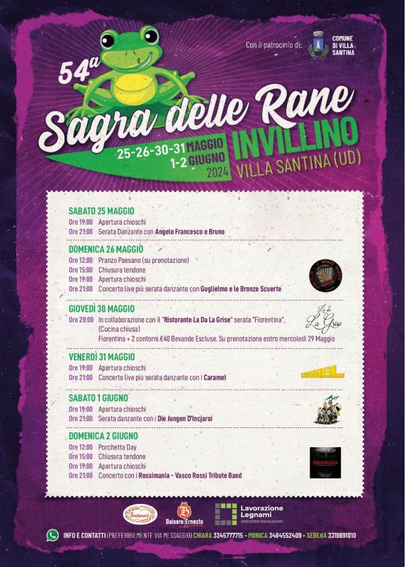 Sagra delle Rane di Invilino di Villa santina (UD) 25, 26 e 30 MAGGIO 1 E 2 giugno 2024