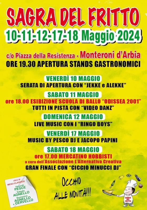 Dal 10 al 12 e dal 17-18 Maggio 2024 a Monteroni d'Arbia la Sagra del Fritto.